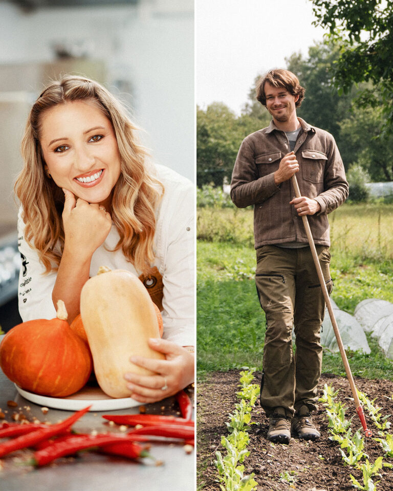 Jakub Pešek pěstuje na farmě se svou ženou Terezou zeleninu a květiny – ručně, s láskou, bez rytí a bez chemie. Miluše Makó je šéfkuchařkou našeho bistra Green table, kde se se svým týmem odvážně pouští do vegetariánského a veganského vaření a dokonale boří mýty o tom, že „bez masa“ znamená „nudně“.